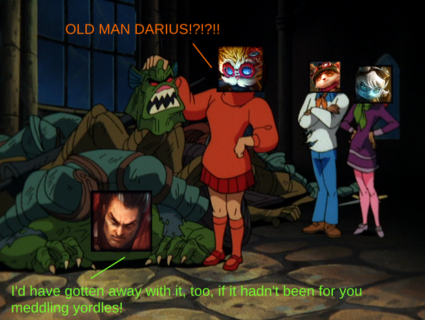 The League has harshly sanctioned Noxus for using spooky costumes and an old projector to frighten poor Mrs. Jones away from her mansion. [Secret — Darius defrauding old widows (10)]